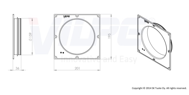 Фланец наружной вентиляционной решетки Vilpe 240х240
