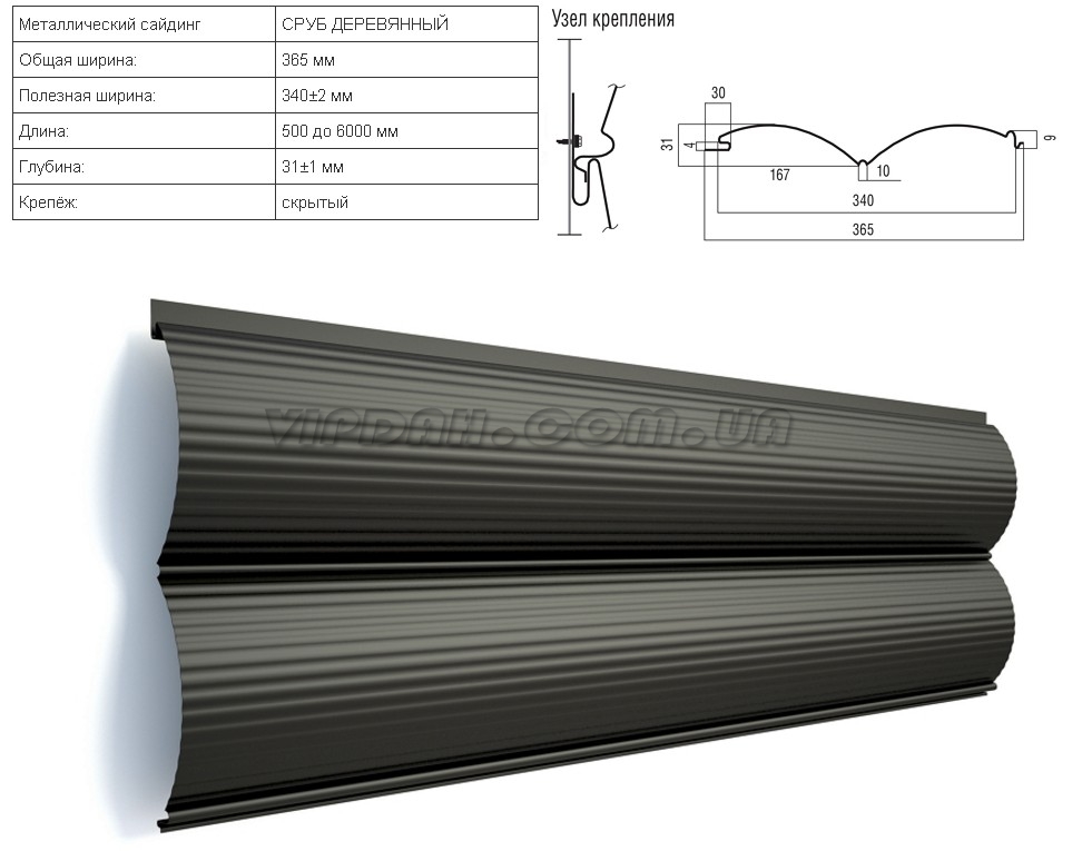 Сайдинг металевий "Зруб дерев'яний" виробляється на заводі в Україні, терміни поставки - 5 - 7 робочих днів.