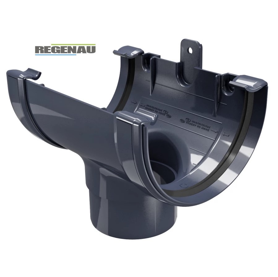 Разработчики бренда Regenau сделали 2 типоразмера водосточной системы, которые удовлетворяют требования потребителей в подавляющем большинстве случаев. В ассортименте водостока Regenau два типоразмера 125/80 и 125/100, где 125 – это диаметр желоба, а 80 и 100 – диаметр трубы в миллиметрах. То есть под один желоб и его комплектующие есть два варианта труб и других элементов. Это дает заметное преимущество с эстетической точки зрения. Дело в том, что наружный водосток — это еще и элемент экстерьера. И желоба малого диаметра (90-100 мм) выглядят несколько мелковато на фоне карнизного свеса. А желоб диаметром 125 мм выглядит гармонично и красиво. При этом цена водостока Regenau ниже чем у конкурентов с аналогичным размером и находится на том же уровне сколько стоит водосток меньшего размера.