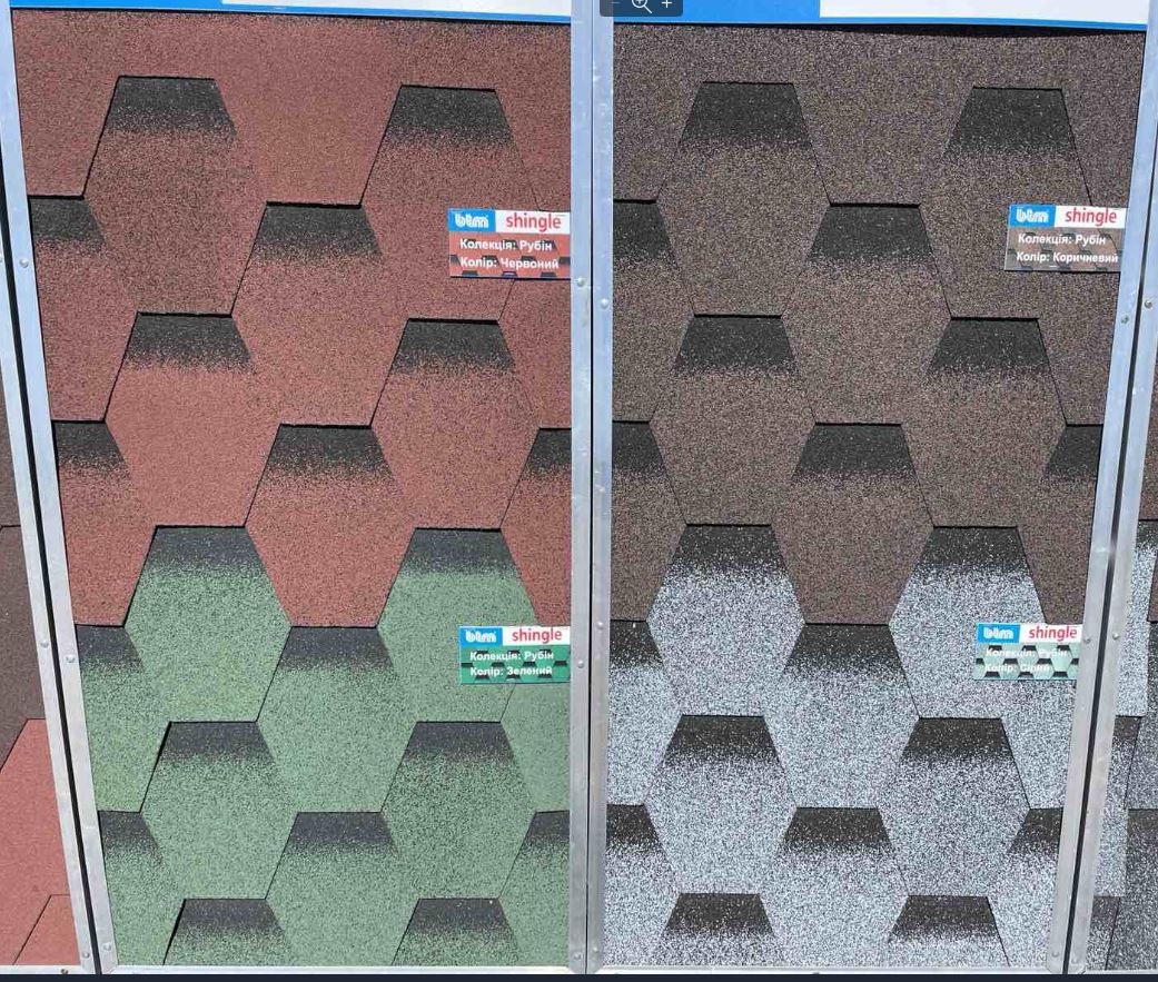 В асортименті представлена червона, коричнева і зелена плитка. Вартість однієї упаковки 353,7 грн. Черепиця складається з 6 шарів різних матеріалів. Завдяки стеклохолстов армуються більш пластичні бітумні прошарку, а базальтова крихта як завершальний етап дозволяє надовго зафіксувати насиченість кольору і чітку форму кожної одиниці. Її обробляють під температурою близько 800 градусів, створюючи щільний керамічний шар на поверхні.