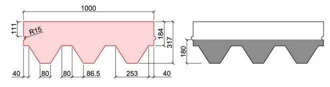 | Розмір гонту, м | 1,0 м х 0,317 м |