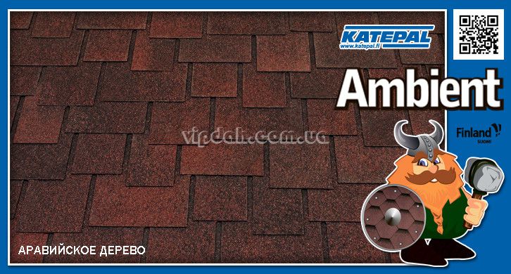 Черепиця Katepal Ambient - новинка в асортименті компанії. Вона виготовлена в новому оригінальному дизайні: за своєю формою черепиця бітумна з цієї серії імітує покрівельну дранку, а колірна гамма дає більше можливості для створення естетичних і головне надійних покрівель. Якщо укладати підкладковий матеріал по всій поверхні даху, то гарантія діє на 20 років!