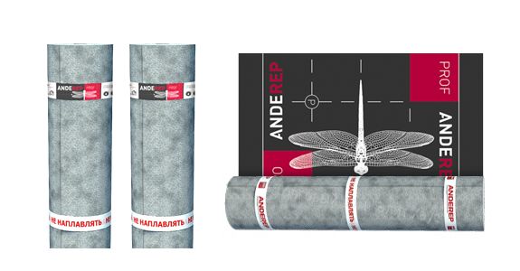 ANDEREP PROF — легкий (всього 0,4 кг / м²) і міцний покрівельний матеріал з основою з поліефіру. неслизька поверхня з поліпропілену (Spunbond) гарантує захист від УФ. Підкладковий килим використовується під будь-який тип покрівельного покриття, а також може служити тимчасовим покрівлею при перервах в роботі до 6 місяців.