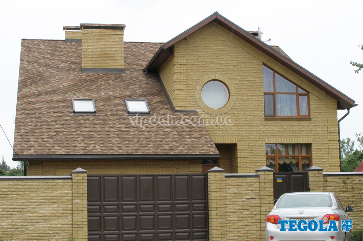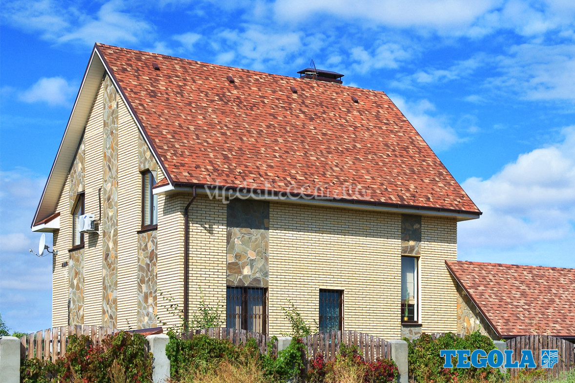 Модель Master J одна з найбільш популярних у Тегола. Вона привертає новаторською формою гонту - трапецієподібні чотирикутники різних пропорцій. Завдяки накладення пелюсток, виходить щільне стійке до атмосферних явищ покриття, зване двошарової або ламінованої бітумної черепицею. Через часткове накладення шматочків також створюється враження об'ємного природного матеріалу. Для посилення цього ефекту застосовується гранулят різного забарвлення. Найтемніші ділянки створюють контрастні переходи між чотирикутниками, візуально піднімаючи світлі над темними.