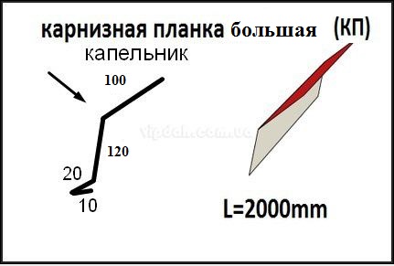 Геометрія стандартної планки карнизної (капельник) великий *:
