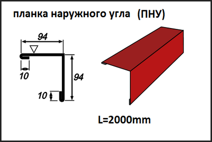 Геометрія стандартної планки зовнішнього кута 94х94 *: