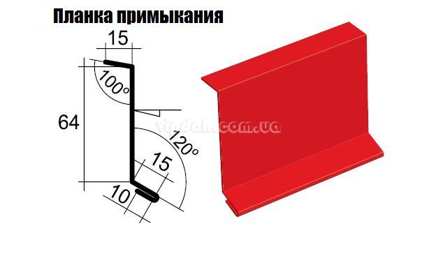 Геометрія стандартної планки примикання для бітумної черепиці *: