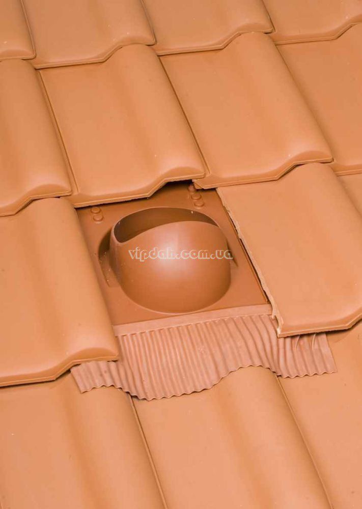 UNIVERSAL прохідний елемент для монтажу на покрівлі з усіх видів цементно-піщаної та керамічної черепиці труб і вентиляторів діаметром 110 -160 мм і антенного вороту. Монтується на 1-, 2-хвильову і гладку черепицю.