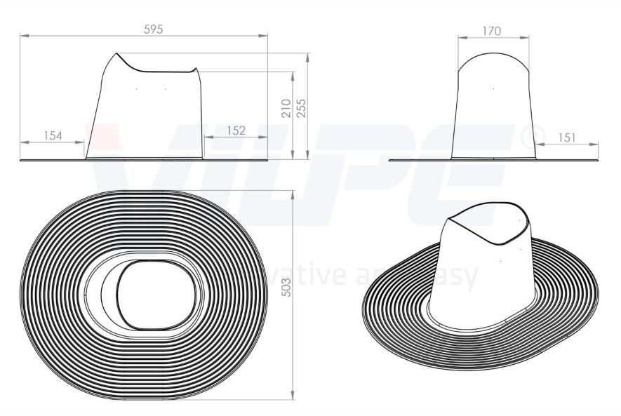 HUOPA/SLATE прохідний елемент високий Прохідний елемент для плоских та пологих бітумних покрівель для монтажу труб та вентиляторів діаметром 110 –160 мм та антенного ворота.