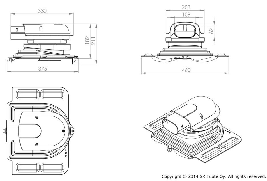 SOLAR прохідний елемент виготовлений з удароміцного, не схильного до корозії поліпропілену, стійкого до впливу ультрафіолету та погодних умов. Матеріал хімічно нейтральний, витримує постійну температуру -40°C ÷ +80°C та тимчасову -55°C ÷ +120°C.