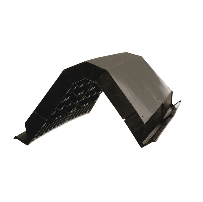 • позначено лінію цвяхів, якими коньковий елемент покрівельного матеріалу кріпиться до вентиляційного елемента.