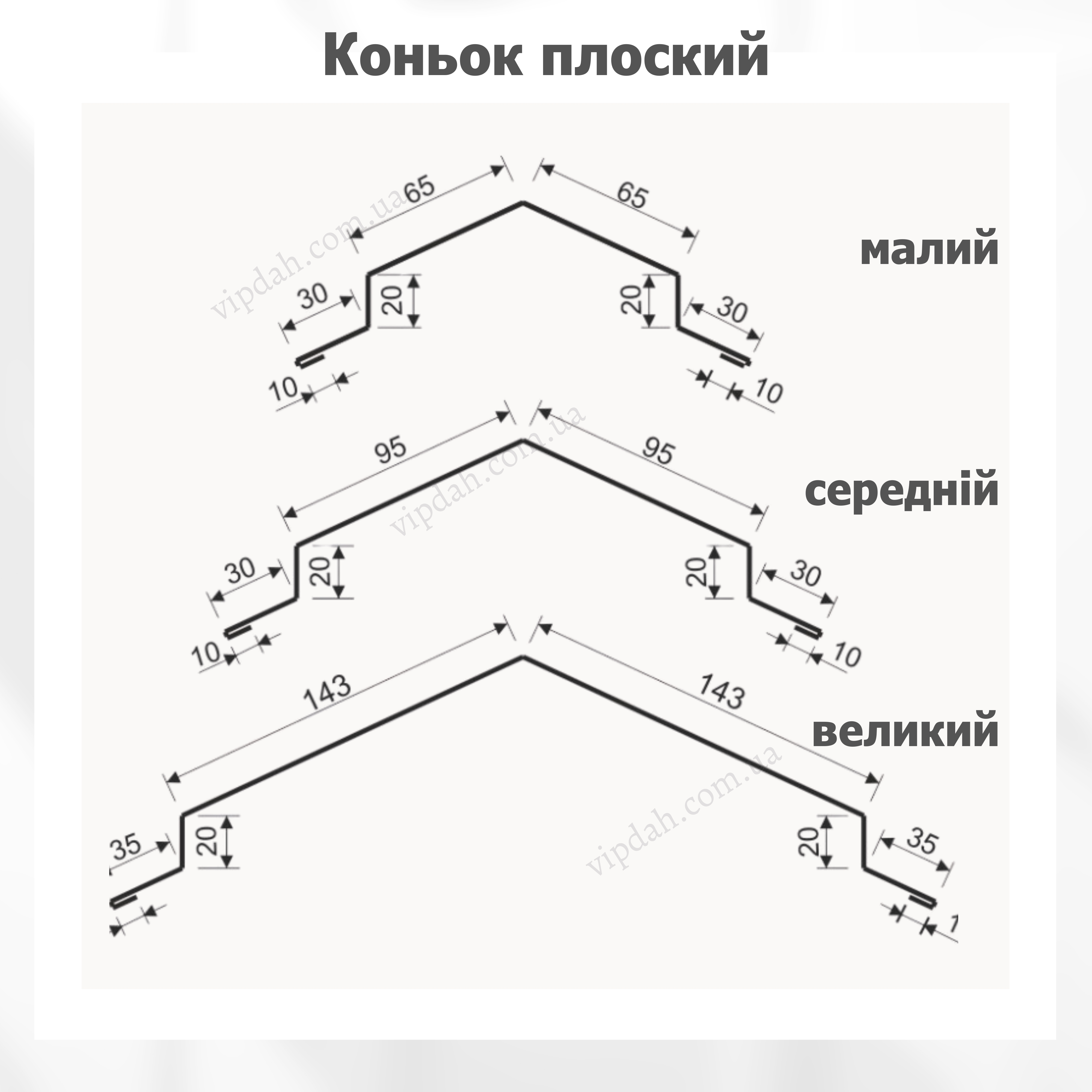 Декоративний коник — це завершальний елемент покрівлі, який надає даху акуратного й естетичного вигляду, одночасно захищаючи стик скатів від вологи, пилу та вітру. Використовується для металочерепиці, профнастилу та інших різновидів металевої покрівлі.
