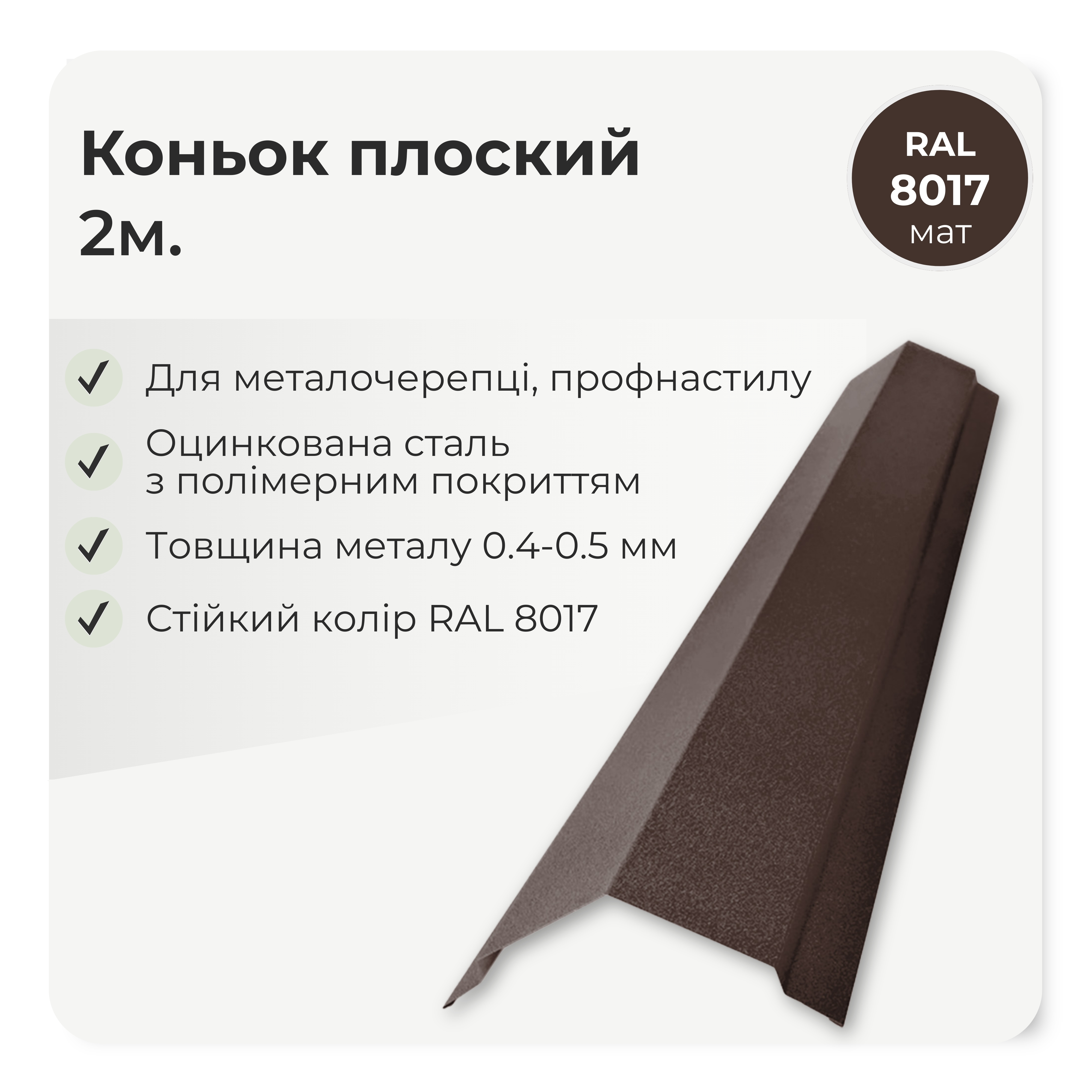 Декоративний коник легко монтується й забезпечує довговічність покрівельної конструкції. Підбирається в колір основної покрівлі для гармонійного зовнішнього вигляду.