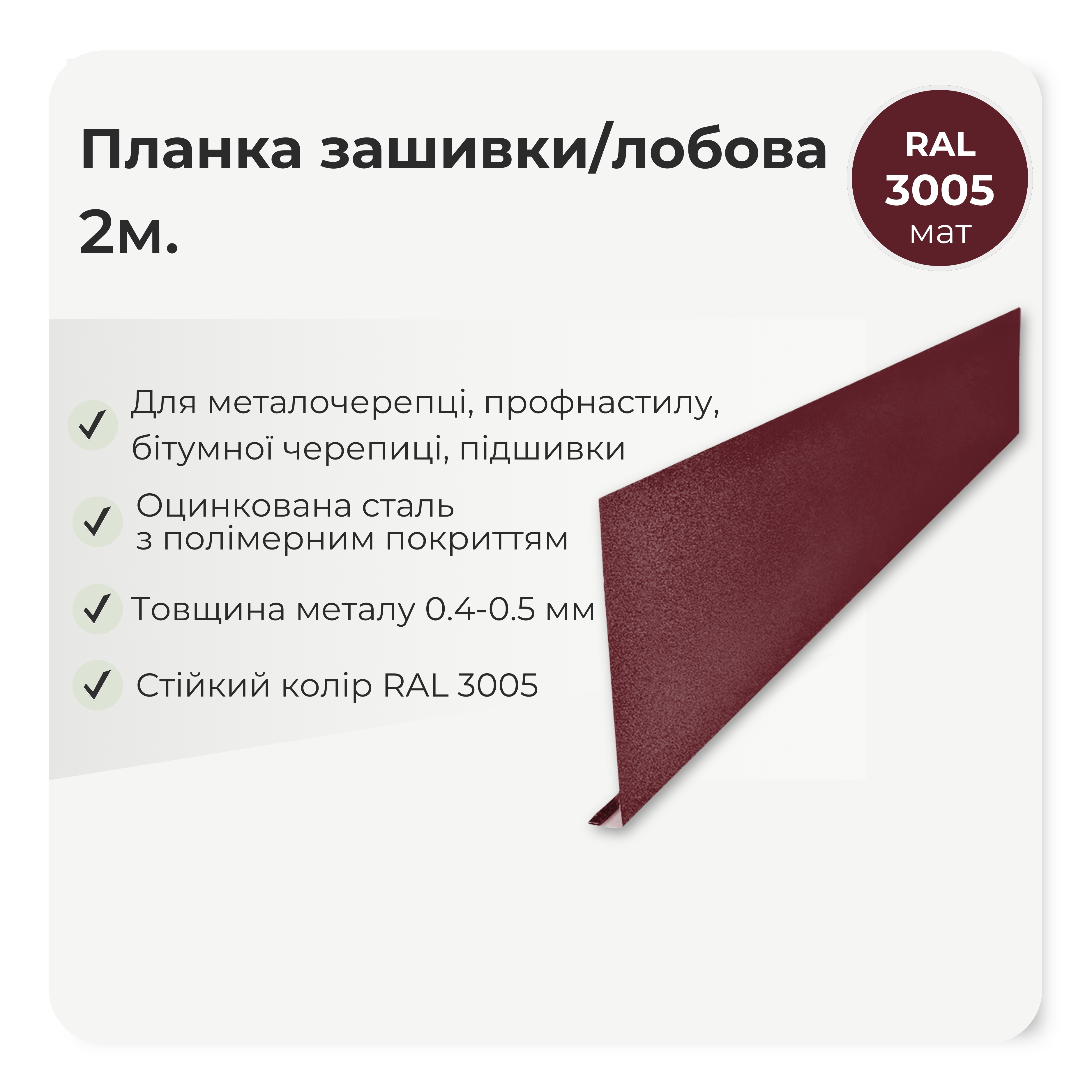 планка використовується при монтажі металочерепиці, профнастилу та інших видів