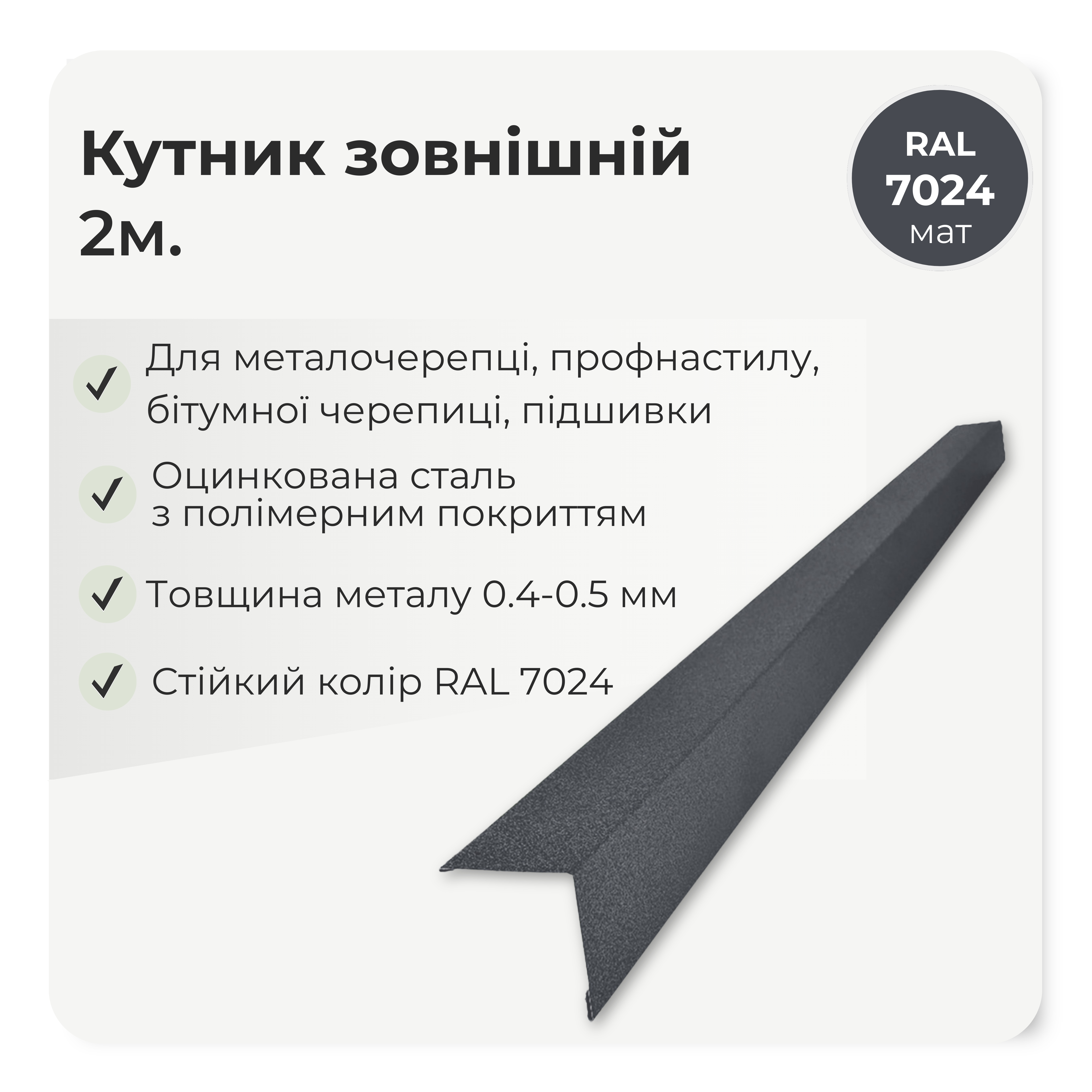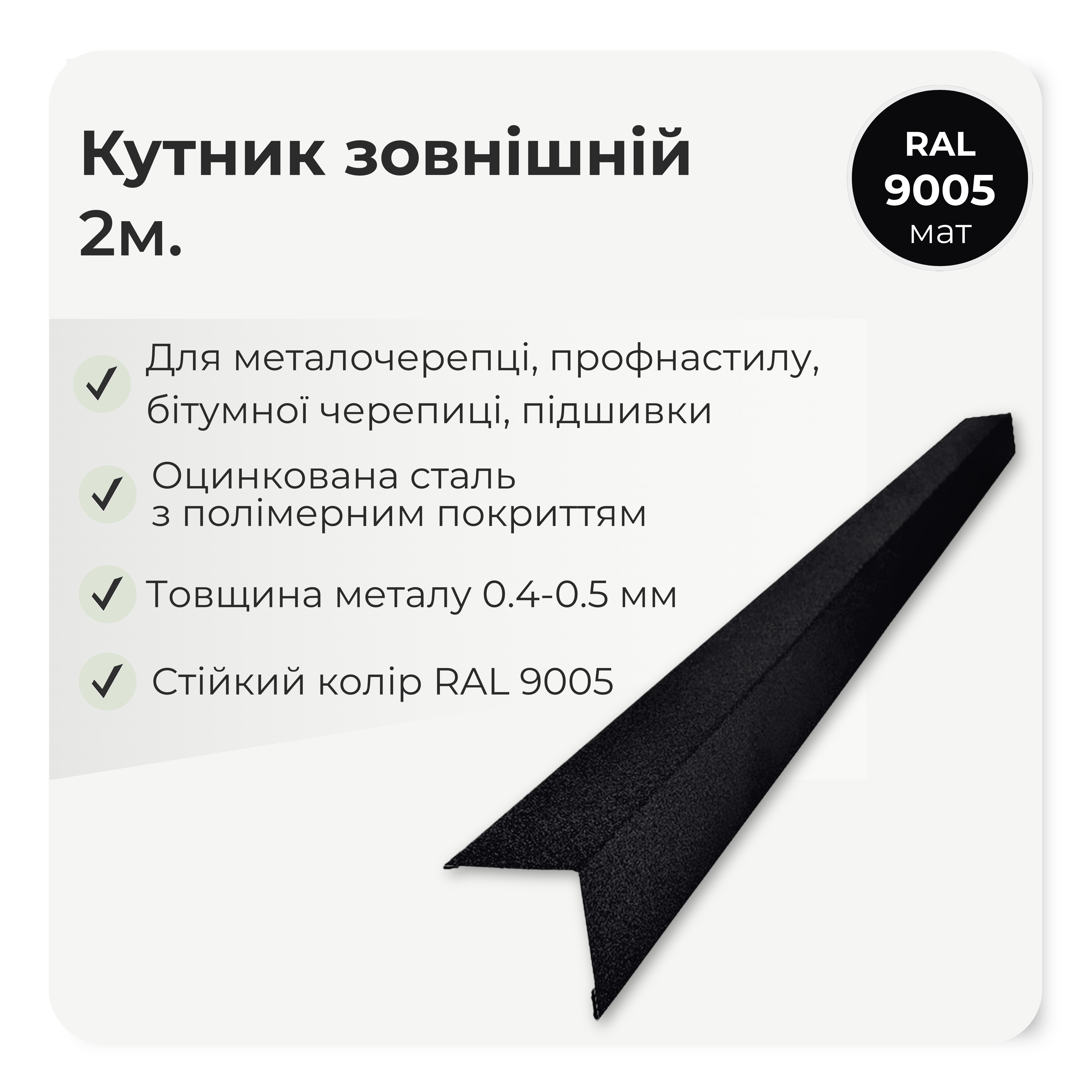 кут застосовується разом із металочерепицею, профнастилом та іншими