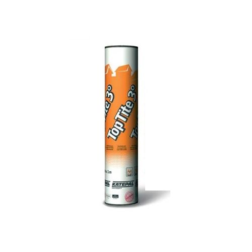 Katepal Top Tite 3° (Tоп Тайт 3°) - професійна мембрана для реставрації старих покрівель і покриття покрівель з невеликими кутами нахилу. Цей матеріал кращий вибір для тих, хто будує свій будинок сам. Може бути встановлений прямо поверху старого покрівельного покриття при мінімальному куті ската в співвідношенні 1: 20 (приблизно 3°). Монтується за допомогою самоклеючихся країв по довжині і нанесенням Компаунд Клея К-36 при поперечному з'єднанні.