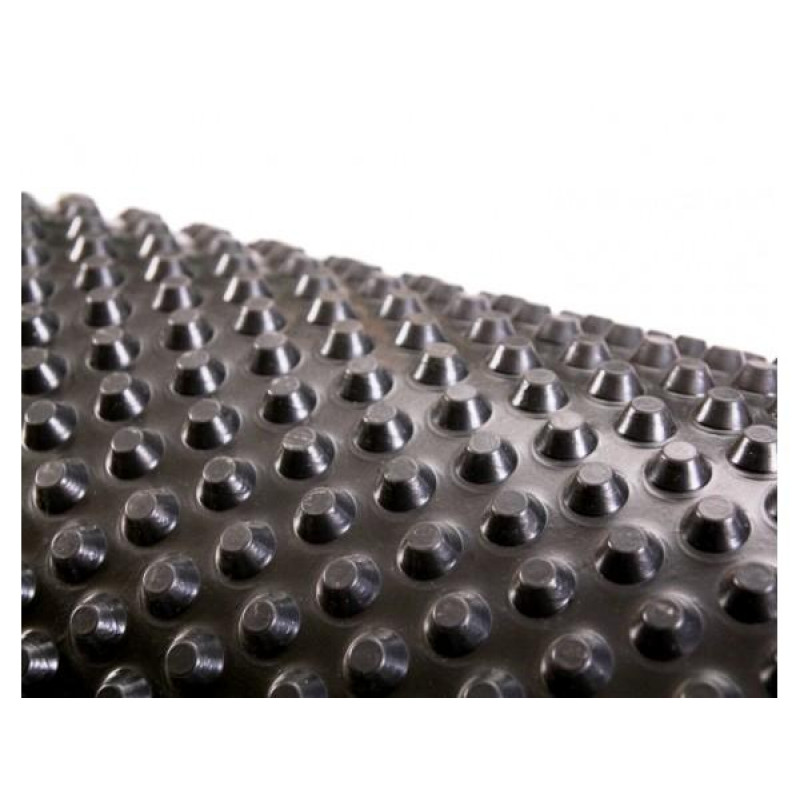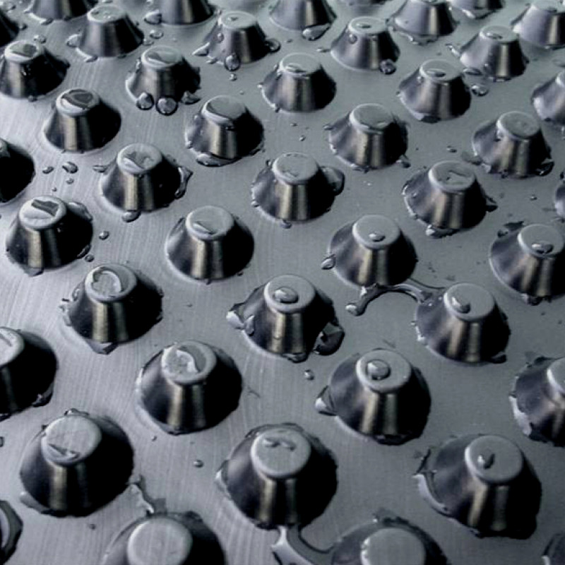 Мембрана полімерна, профільована являє собою плаский водонепроникний гнучкий одношаровий рулонний матеріал чорного кольору з поліетилену високої щільності (HDPE), що має профільовану поверхню з відформованими виступами з одного боку поверхні, та западин з іншого. Мембрана ефективно розподіляє тиск ґрунту по всій площі основи або фундаменту будівель і споруд. При цьому виключається утворення локальних (точкових) навантажень. Застосовується для захисту гідроізоляції від механічних пошкоджень, захисту фундаментної плити відкапілярної вологи, санації вологих стін, підготовки основи під фундаментнуплиту та гідроізоляції вимощення. Шипоподібну мембрану розрізняють за показником щільності. Властивості сировини, з якого він виготовлений, дозволяють застосовувати продукт в якості надійної гідроізоляції найрізноманітніших споруд. Завдяки своїй структурі матеріал здатний витримувати значні навантаження. Шипоподібну мембрану щільністю 400 г/кв.м застосовують для захисту гідроізоляції фундаментів глибиною до двох метрів, а мембрана з геотекстилем використовується в якості дренажного шару.