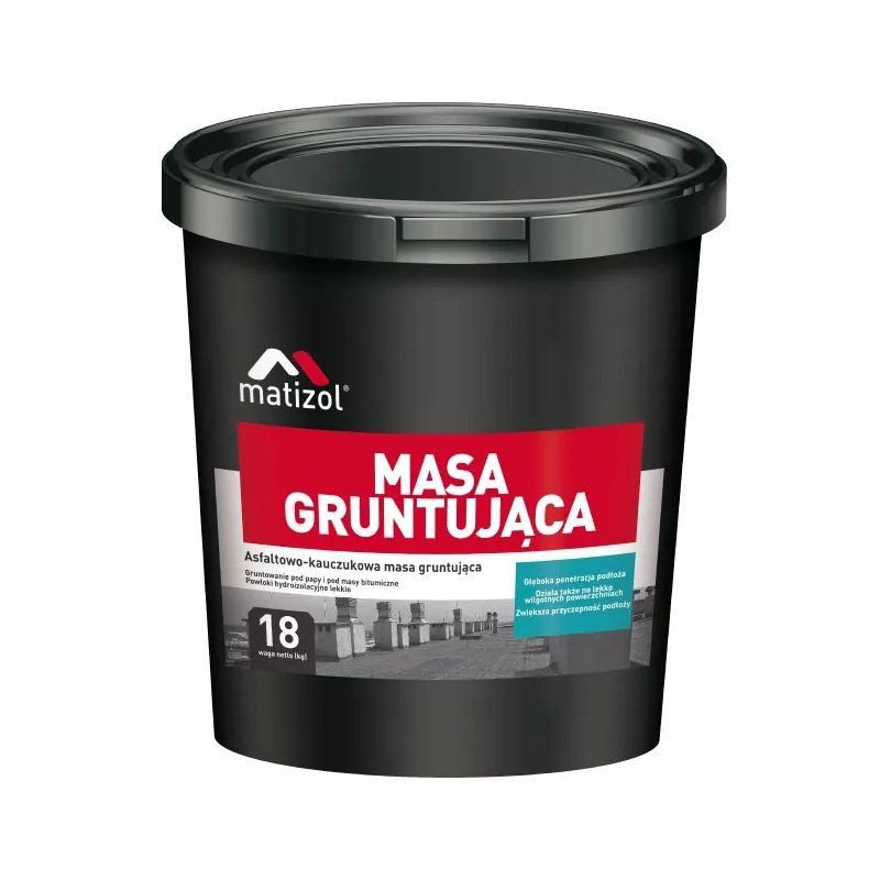 Дисперсійний бітумно-каучуковий глибокопроникний праймер MATIZOL придатний для використання на вологих поверхнях. Забезпечує ізоляцію, стійку до появи тріщин внаслідок морозів (аналогічних пошкодженням асфальтованих доріг). Отримані покриття еластичні, міцно зчіплюються з основою та вирівнюють його мікротріщини. Грунтовка підходить для самостійного оздоблення та ремонту покрівлі. З його допомогою ви ефективно підготуєте їхню поверхню, забезпечивши її ідеальне зчеплення, що стане в нагоді при укладанні руберойду та бітумних мас.