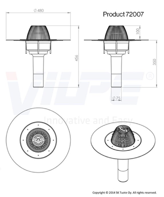 Водостічна лійка для систем внутрішнього водостоку на плоских та пологих бітумних покрівлях.