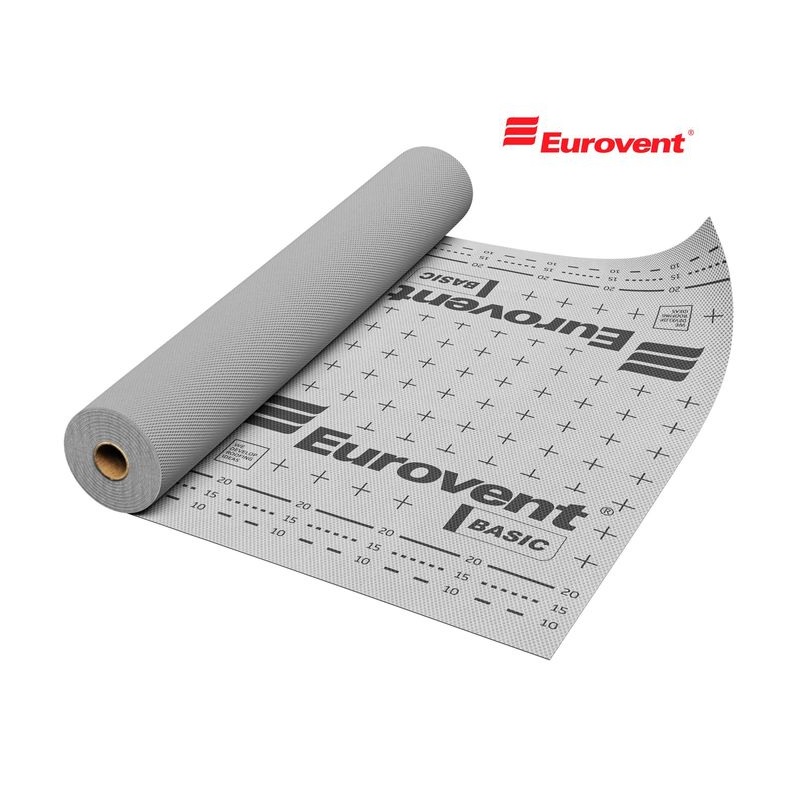 Покрівельна мембрана Eurovent® BASIC застосовується як попереднє покриття скатних, ізольованих, вентильованих дахів без суцільної решетування. Підходяща для ремонту даху та горища із зовнішнього боку. Не вимагає вентиляційної щілини між мембраною та теплоізоляцією (склана або мінеральна вата), тому мембрана може безпосередньо стикатися з термічною ізоляцією. Монтаж покрівельного покриття на мембрані завжди при використанні рейок та котрій.