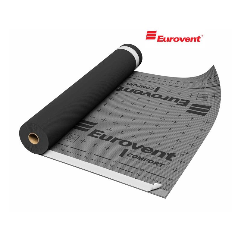 Покрівельна мембрана Eurovent® COMFORT застосовується як попереднє покриття скатних, ізольованих, вентильованих покрівель, особливо на суцільну решетування і для схилів від 12 до 18 градусів. Ідеально підходить для ремонту даху та горища. При монтажі не потрібно збереження вентиляційної щілини між мембраною та теплоізоляцією (мінеральна вата, скловолокно, тощо), отже мембрана може стикатися безпосередньо з теплоізоляцією. Монтаж остаточного покриття на мембрані варто завжди зробити при використанні рейки та контррейки. Придатна для багатьох видів покрівельних покриттів, особливо для керамічної та бетонної черепиці, металочерепиці, алюмінієвого листа і т.п.