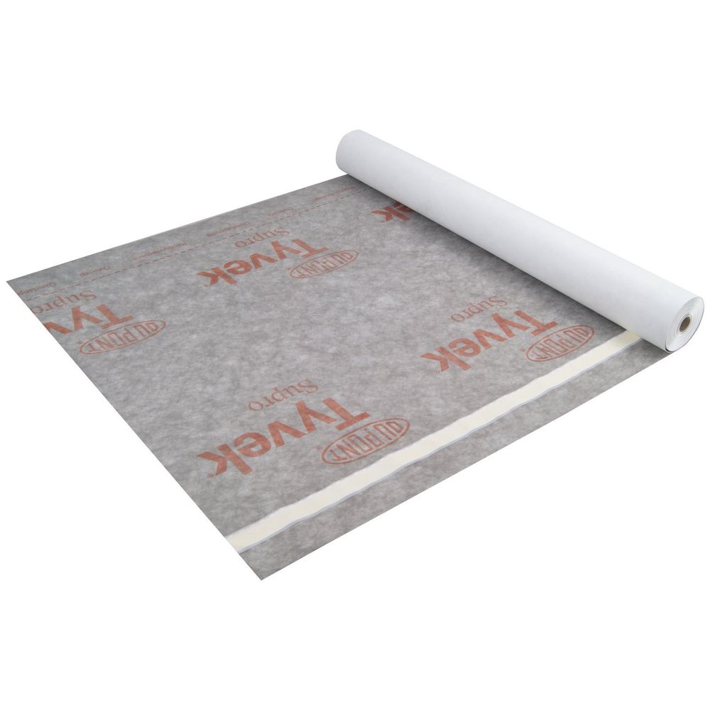 Tyvek Supro - надміцна паропроникаюча двошарова мембрана, що представляє собою нетканий поліетилен, армований поліпропіленовим нетканим полотном, який складається з мільйонів тонких безперервних волокон поліетилену низького тиску, отриманих методом надшвидкісного формування і скріплених під впливом температур. Унікальна структура забезпечує поєднання міцності, захисних властивостей і високій паропроникності по всій поверхні полотна.
