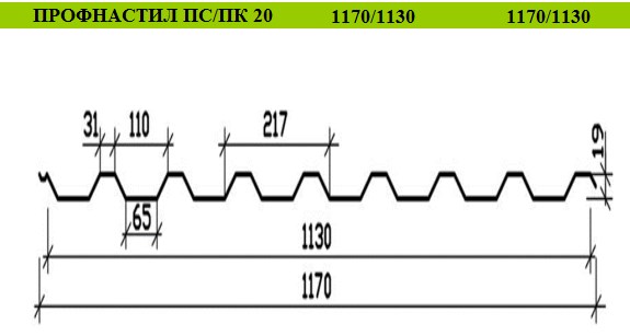 Геометрія профнастилу ПС/ПК-20: