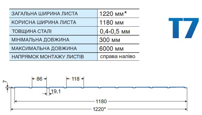 Геометрія профнастилу Т-07: