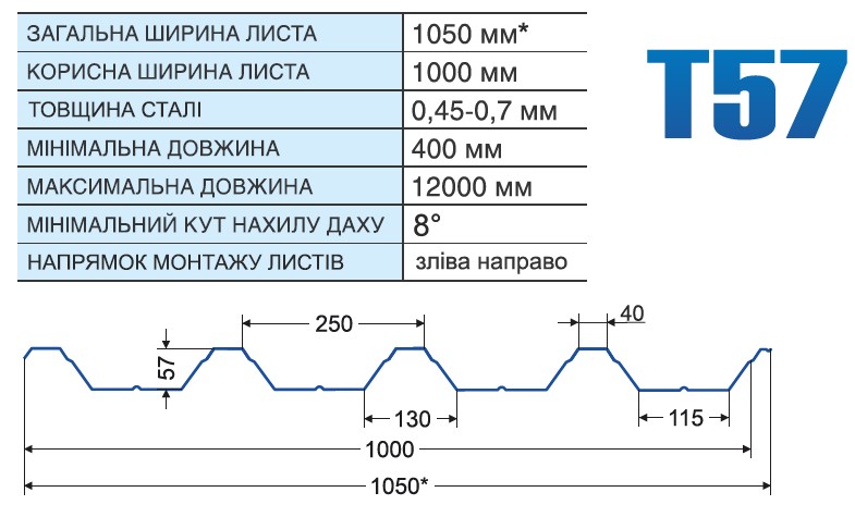 | Товщина металу | 0.45мм; 0.50мм; 0.70мм |