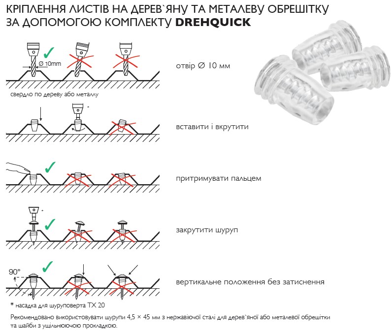 Тип кріплення шурупи 4,5 × 45 мм з нержавіючої сталі купуються окремо