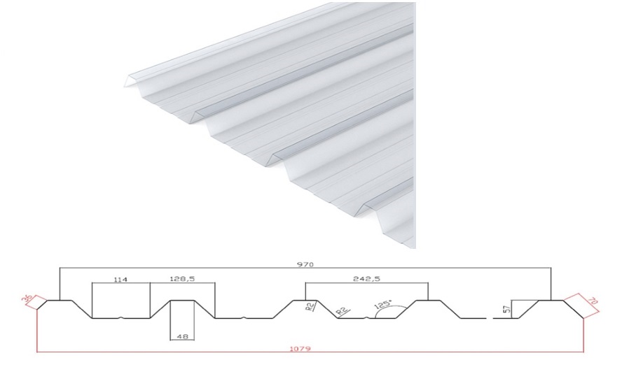 Прозорі профільні листи повністю відповідають розмірам профнастилу НС-57 Компанії "ТАЙЛ". Зазвичай ці профнастили використовуються для облаштування покрівель як верхні покрівельні листи. На своїх складах ми маємо постійний запас прозорого профільного листа НС-57.