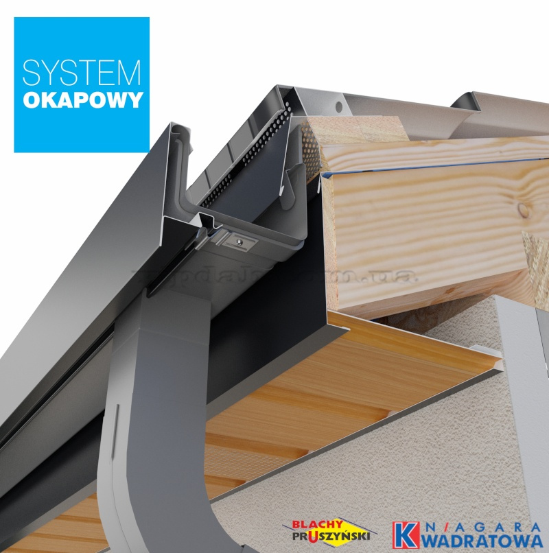 Водостічні системи випускаються зі сталі з цинкуванням першого класу з двостороннім поліуретановим покриттям (колір RAL7016 i RAL9005). Метал з цим покриттям має високу стійкість до корозії, до механічних пошкоджень і знебарвлення.
