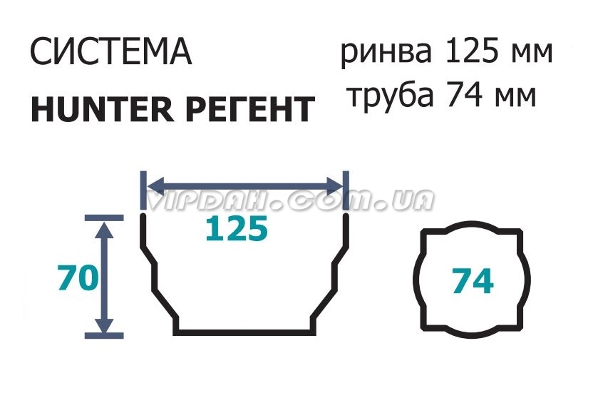 Система Hunter Регент - елегантна і витончена, виконана в англійському аристократичному стилі. Хвилясто-ступінчастий дизайн системи виразно підкреслює лінію покрівлі і прекрасно поєднується з сучасними стилями будівель і будинків різних епох, стилів і напрямків. Система Hunter Регент має унікальний рельєфний профіль, що володіє потужними функціональними характеристиками. Пропускна здатність до 4,7 літрів в секунду.