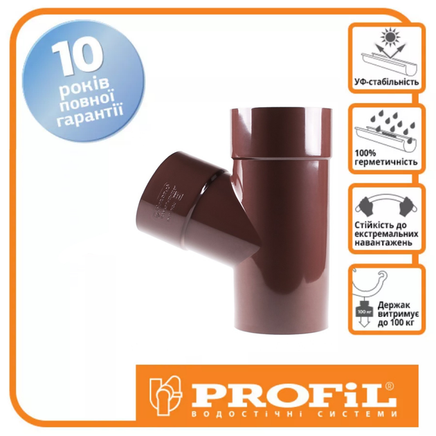 Трійник 60° 75/75 PROFiL Ø75 колір Коричневий