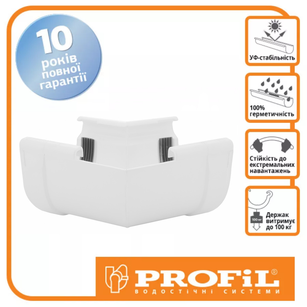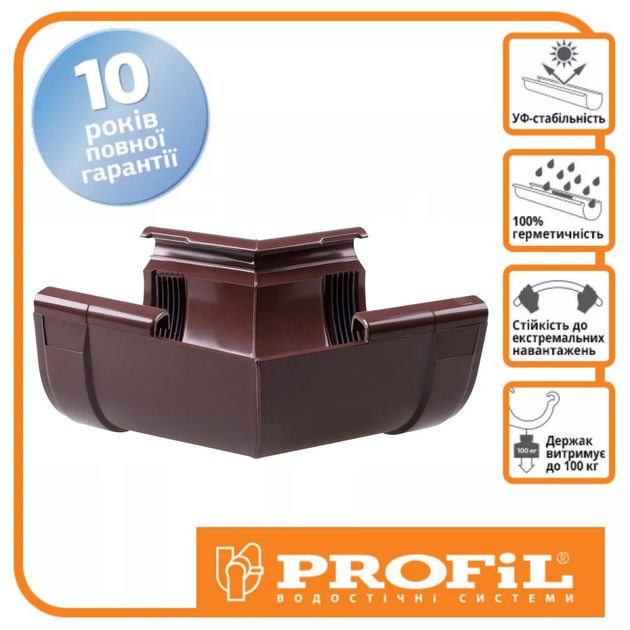 До фітингів відносять: кути ринви, заглушки, воронки, коліна труби, з'єднувачі труб і ринв, власники та ін.