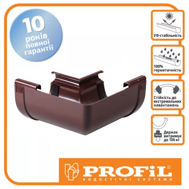 До фітингів відносять: кути ринви, заглушки, воронки, коліна труби, з'єднувачі труб і ринв, власники та ін.