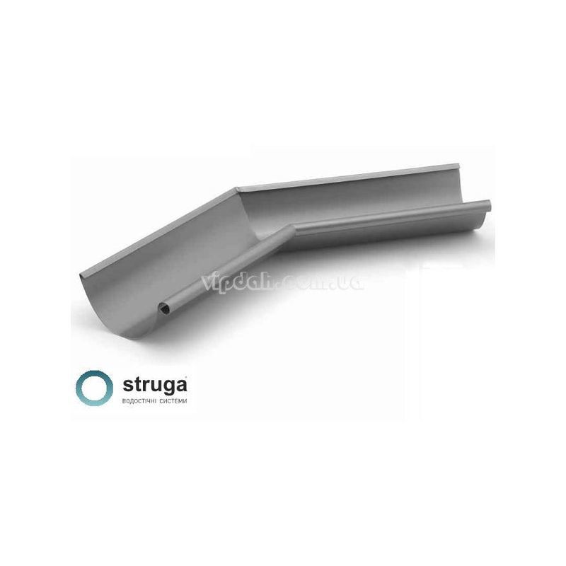 Кут ринви внутрішній з довільним ° STRUGA Ø150. Виготовляється під замовлення з кутом 80/100/110/120/135/150°. Встановлюється за допомогою з'єднувачів ринви на кутах будинків. Для уникнення провисання рекомендується встановлювати підсилювач з'єднання кута.